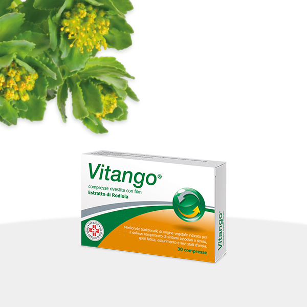 VITANGO è un medicinale tradizionale di origine vegetale indicato per il sollievo temporaneo di sintomi associati a stress, quali fatica, esaurimento e lievi stati d’ansia.