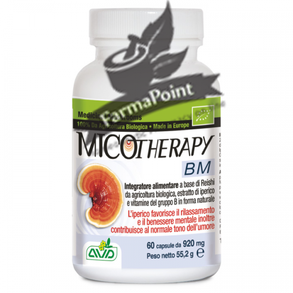 Micotherapy BM 60 Capsule AVD Reform Integratore alimentare a base di Reishi da agricoltura biologica, estratti di piante e vitamine del gruppo B in forma naturale. Micotherapy BM svolge una naturale azione calmante, attenuando in modo naturale gli stati d'ansia. Grazie all'azione sinergica dei suoi componenti aiuta a migliorare la qualità del sonno e la capacità di gestire lo stress psicofisico contribuendo a fornire una maggiore lucidità mentale.